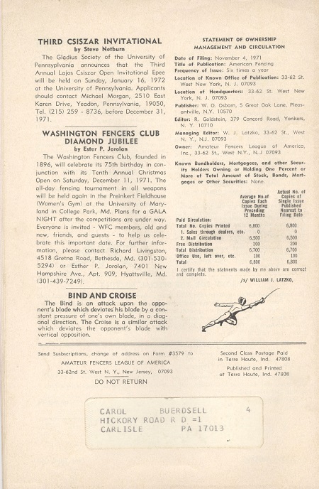 1971 – Volume 23, Number 2 American Fencing Magazine