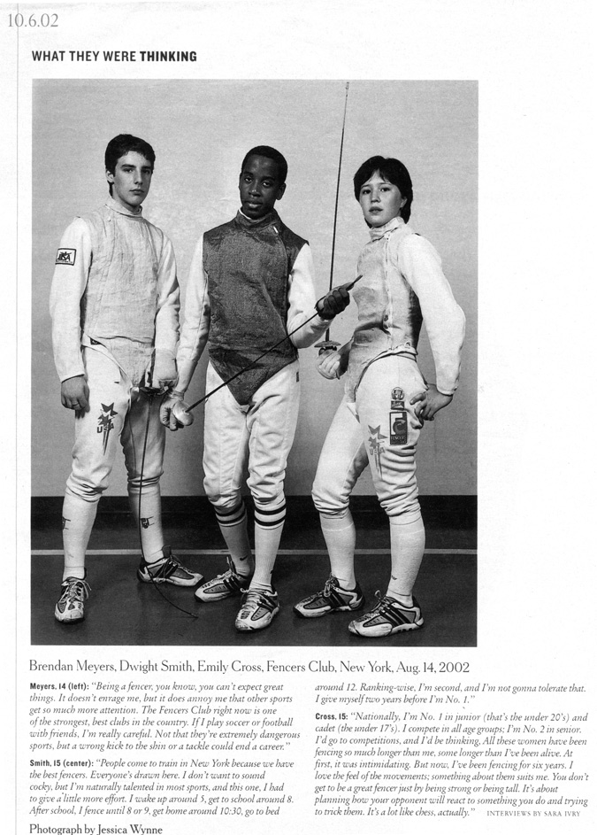 Brendan Meyers, Dwight Smith, Emily Cross; Fencers Club, New York.