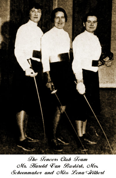 Elizabeth Van Buskirk (left)1930 US Foil Champion with teammate Florence Schoonmaker who was US Foil Champ in 1925, 1926 and 1929 (center) and Lena Gilbert (US foil bronze medalist) on the right.